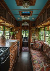 A couple bought a $7,200 school bus and turned it into their 'dream home' using cheap items off Facebook Marketplace and recycled materials — see inside