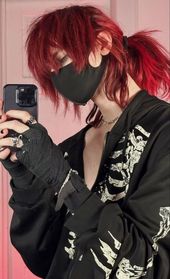 emo black and red hair