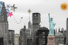 an image of cats and stars on a wallpaper pattern that looks like they are wearing hats