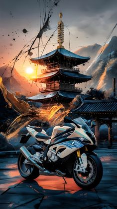 Sports Motorcycle At Sunset