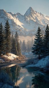Mountain Green Forest Reflected Lake