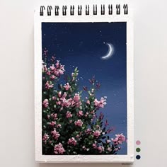 Nighttime Watercolor Painting With Moon