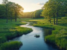 River Flowing Through Lush Green Landscape