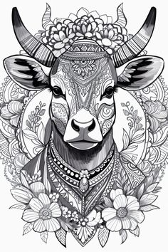 Cow With Flowers Coloring Page