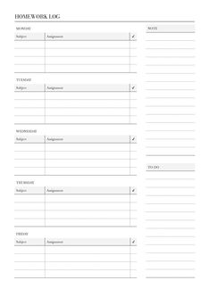 Weekly Homework Planner Template