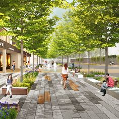 Menschen genießen das Radfahren, Spazierengehen und Verweilen in Straßencafés – eine urbane Oase, die Natur und modernes Leben perfekt verbindet. Die Stadt der Zukunft ist grün, lebenswert und menschenfreundlich! #Autofrei #NachhaltigeMobilität #Fußgängerzone #GrüneStadt #UrbanGardening #Lebensqualität...