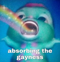 a cartoon character with a toothbrush in his mouth and the caption above it reads, absorbing the gayness