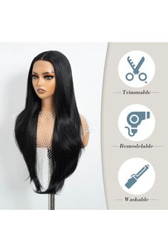 Long Black Straight Wigs 30 Inch Synthetic Lace Front Wig for Women Pre Cut HD Lace Wig Middle Part Put On Go Glueless Wigs with Natural Hairline, #AD, ##Hairline, #ADVERTISEMENT, #Natural, #Black, #Straight