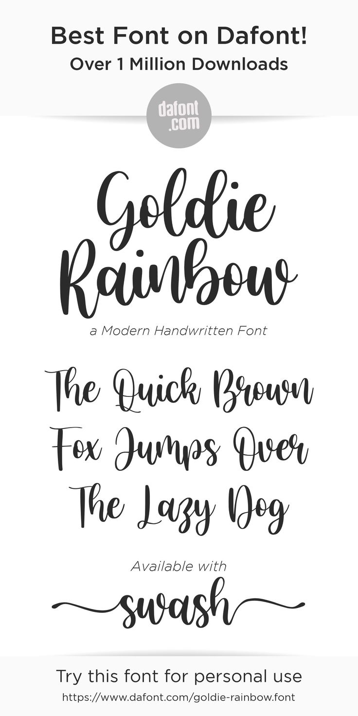 Try this font for your personal use. Suitable for making wedding invitations, t-shirts, social media branding or just used to express words above the background. https://www.dafont.com/goldie-rainbow.font #dafont#freefont#freebies#free#downloads#bestfont