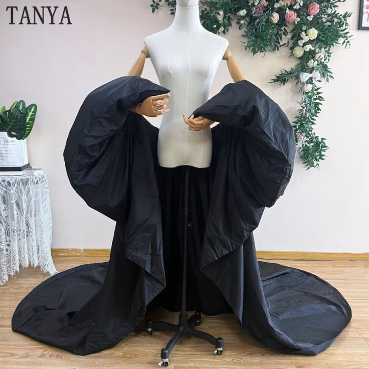 Romantic Black Taffeta Long Wedding Cape Puffy Short Sleeves Court Tain Evening Cape Outfit Coat For Women Costume - AliExpress 320