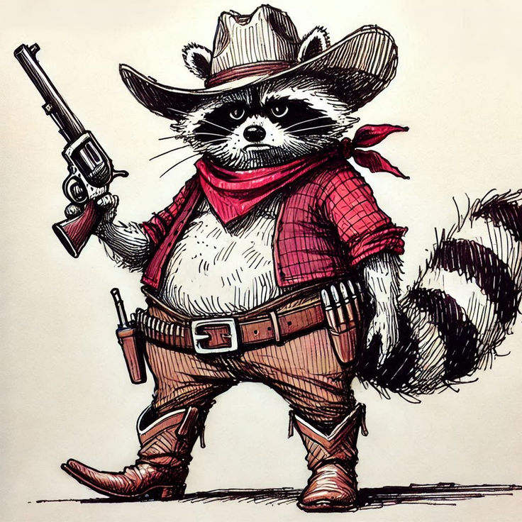 Funny Fat Raccoon Cowboy Pencil Drawing