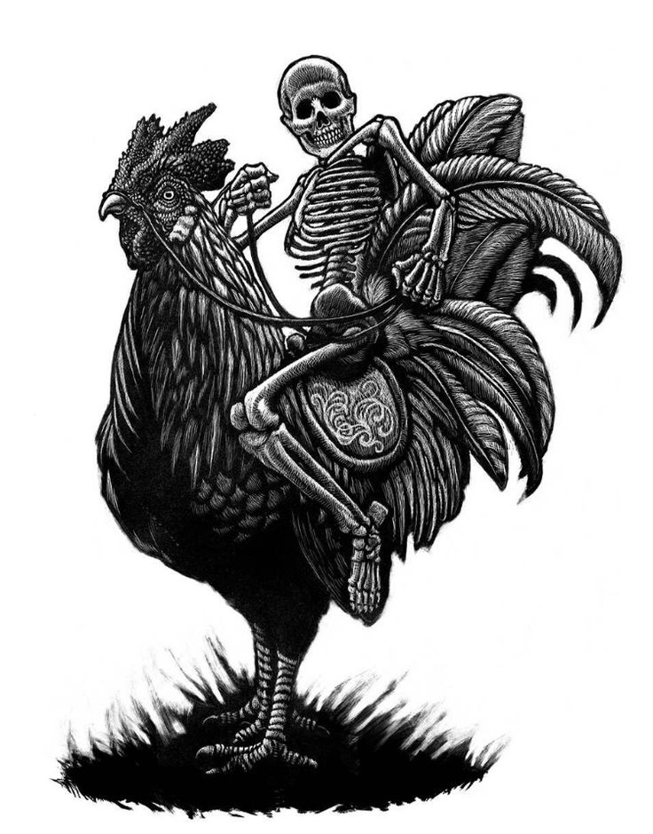 Skeleton Holding Rooster