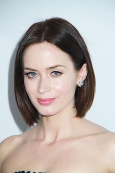 Corporate Bob Hair, Gone Girl Bob, Bob Tucked Behind Ears, Red Carpet Bob Hairstyles, Sleek Brunette Bob, Long Bob Tucked Behind Ears, Bob Red Carpet Hairstyles, Bob Red Carpet, Emily The Devil Wears Prada