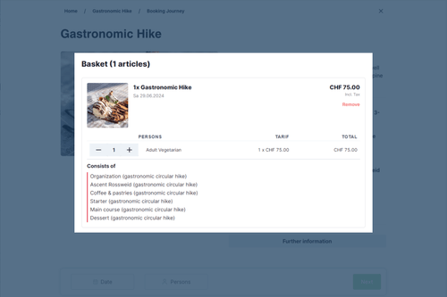 Mit unseren Bundling-Features können Sie Ihre Basisangebote wie Tickets mit Gastroangeboten, Aktivitäten oder Verleihgegenständen kombinieren. Steigern Sie den wahrgenommenen Wert und erleichtern Sie Ihren Kunden das Buchen von Zusatzleistungen.