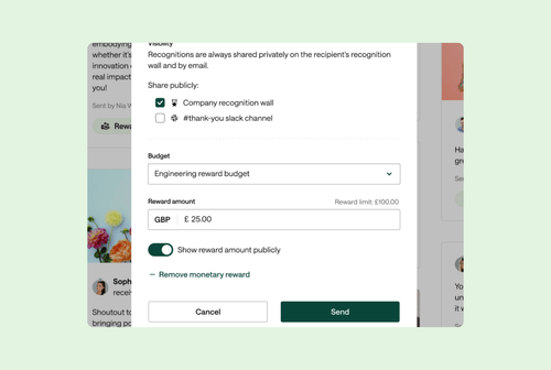 Celebrate achievements with instant monetary rewards linked to your existing messaging tools. Build a culture of appreciation without disrupting your day.