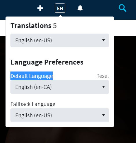 Tip: You can see and modify your Default Language using the translation widget in the top right header or directly in your account settings.