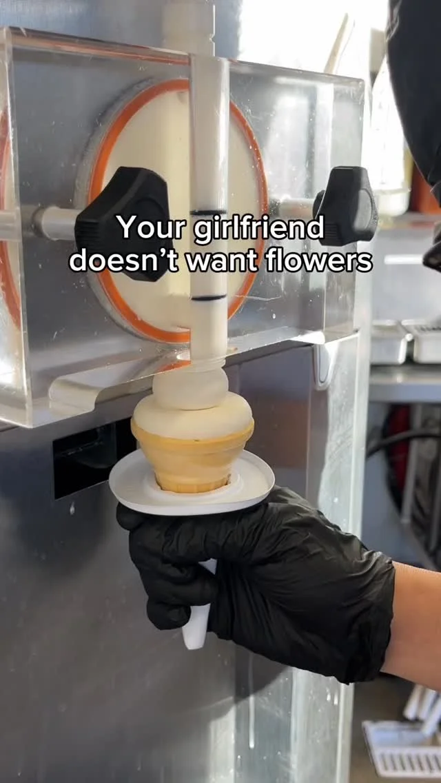 hand holding a chocolate smores milkshake in front of an ice cream sign