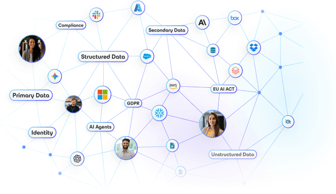 The Data Command Graph maps all your data—structured, unstructured, primary, and secondary—and provides rich context by connecting it to every identity, AI model, and system that touches it across its lifecycle.