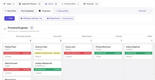 An integrated solution designed to help companies of all sizes excel at hiring. Ambitious hiring teams love Ashby.