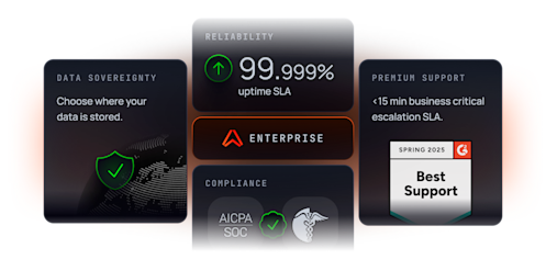 - Proven compliance: Certified for SOC 2 Type II, ISO 27001, HIPAA BAA, GDPR, and CCPA.