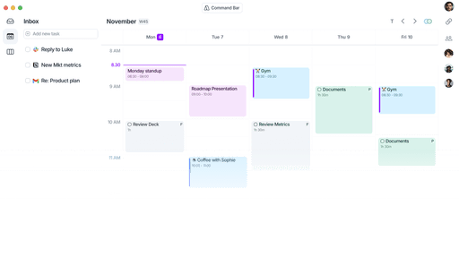 Calendar, tasks, inbox, and AI into one seamless flow.