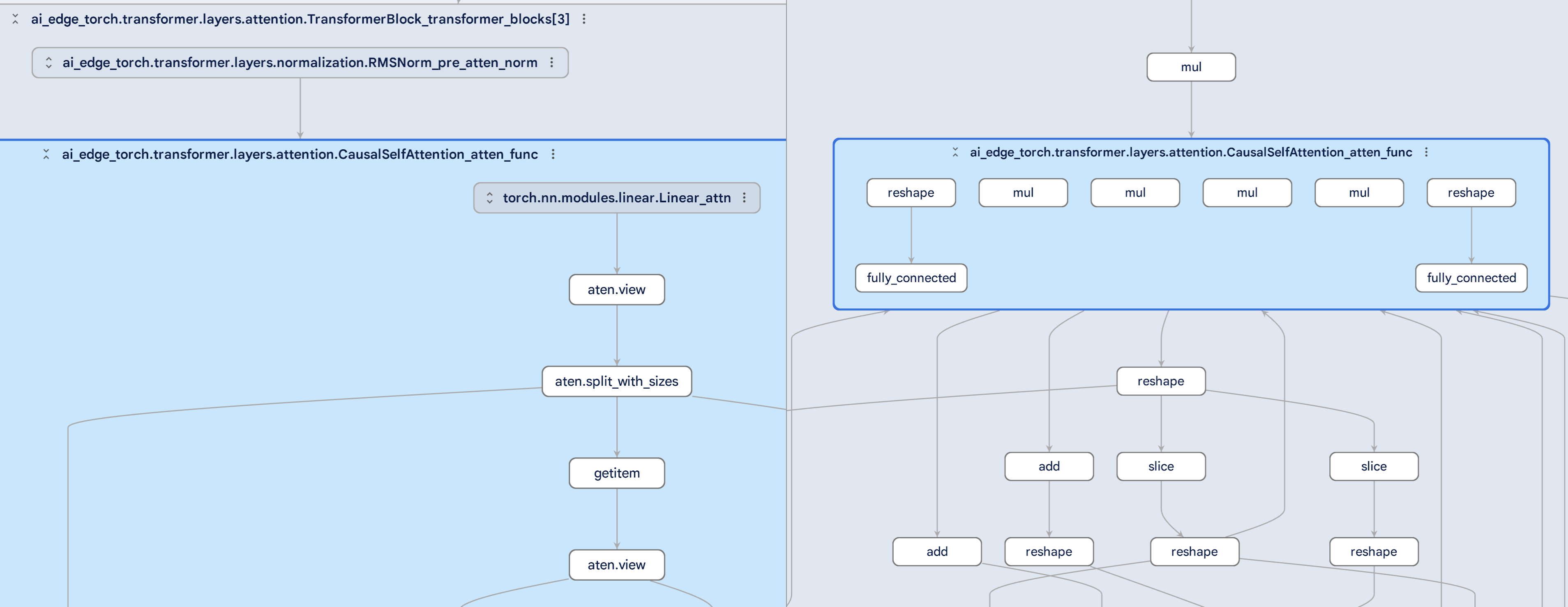 O Model Explorer foi projetado para renderizar modelos grandes sem problemas. Milhares de nós? Sem problemas. O mecanismo de renderização baseado em GPU pode aumentar o escalonamento para renderizar modelos muito grandes sem problemas. E a abordagem exclusiva do Model Explorer para reduzir camadas, como um sistema de arquivos e pastas, significa que ele é mais rápido e fácil de navegar.