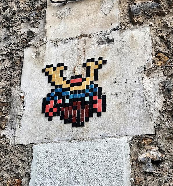 Le travail de la mosaïque n'est pas bien entendu l'apanage du seul Invader, on le constate aussi avec le travail de K Bal, ici Rue Mouffetard.