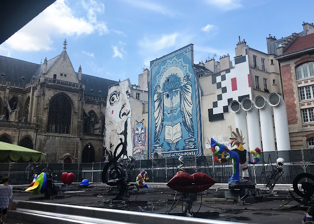 Le géant de la place Igor Stravinsky, je l'avais déjà photographié l'année dernière, mais je ne résiste pas à récidiver, d'autant plus qu'un Choofy plein d'audace s'est invité à la fête de Jef Aérosol et Shepard Fairey.