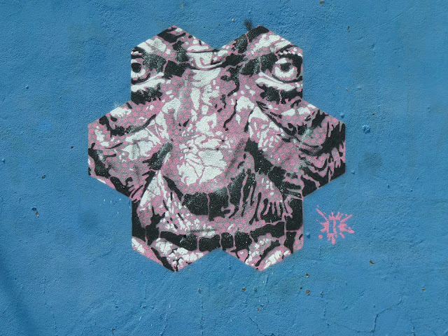 Rezende et ses pochoirs polygoniques est très présent sur le Muro Azul de la rua das Murtas.