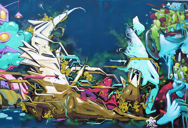 Ce grand mur est hallucinant de beauté. Il est peint par Stom, Astustwo, Dear Lozada, Gamo et Difuz.