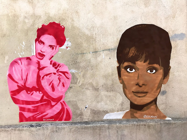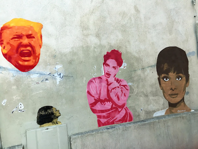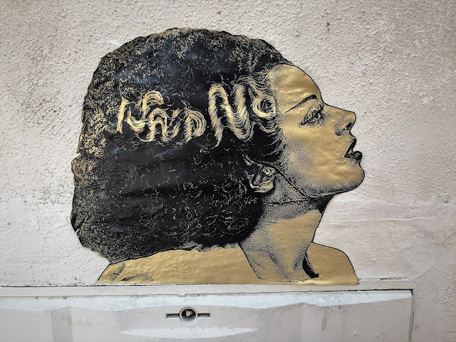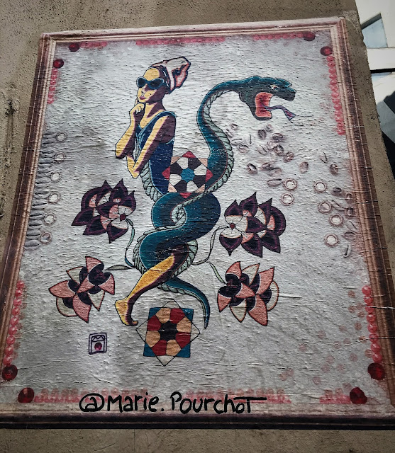 Marie Pourchot avait déjà collé de ses oeuvres sur ce mur de la rue Fabre, ce dernier collage est plus frais.