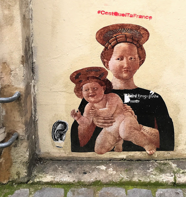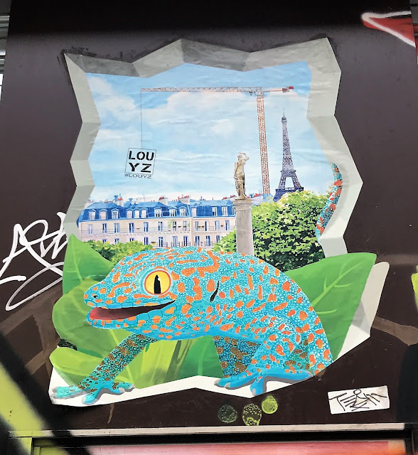 On trouve même une petite trace, une oreille à côté d'un collage dont l'auteur(e) m'échappe, sur l'ile aux cygnes.