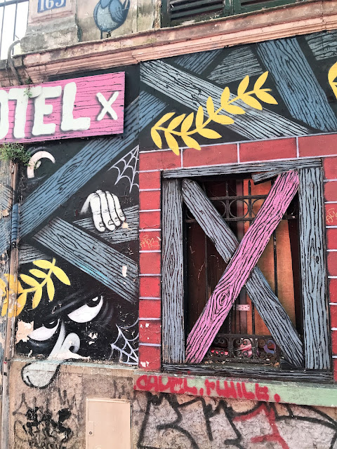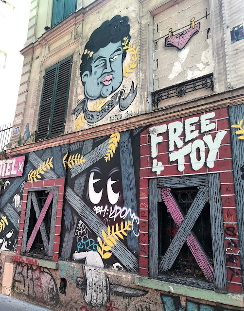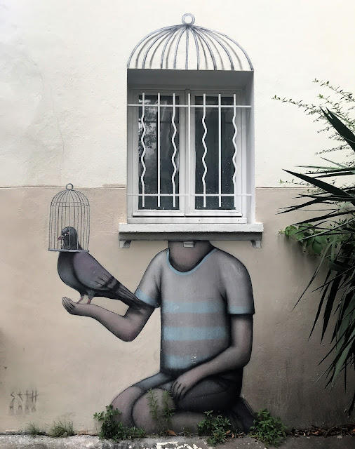 Mais si j'étais tout à fait sérieux, c'est une hypothèse, si j'avais l'envie formelle d'être précis, j'aurais dû citer les toutes premières œuvres de Seth que j'ai vues en arrivant à Paris lors de ce séjour estival, celles du marché des Batignolles, rues Fourmeyron et Brochant. Mais bon, je ne le suis pas alors voilà que le côté déglinguo prend le dessus sur cette publication... grand fou que je suis!