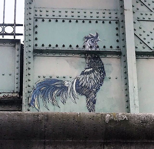 De loin, j'ai cru que cette volaille était d'Ardif, mais de près je n'y crois plus. Sur un pont du quai de la Marne.