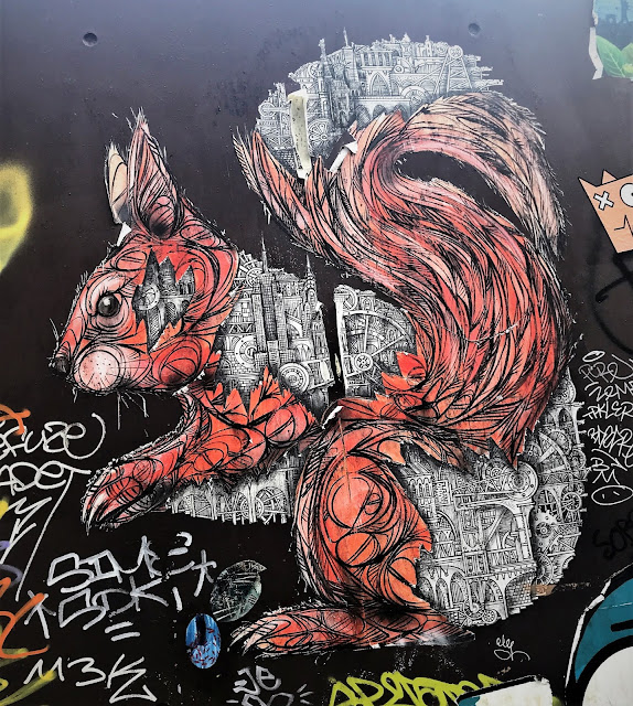 Cet écureuil est le fruit de la collaboration entre Ardif et Dzia Rue Marie Andrée Lagroua Weill Hallé. Rencontre de styles et de magies parfaitement conciliables.