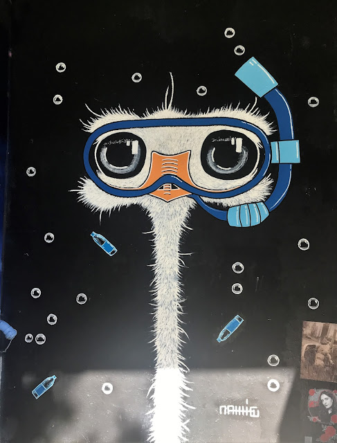Rue de Belleville, une devanture d'un magasin est agrémenté de dessins succulents. Je ne sais de qui.