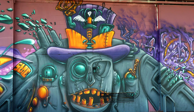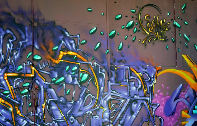 Chez les locaux, le bordelais Scan-R est une figure du graffiti très important, que l'on retrouve un peu partout dans le sud ouest. Je l'ai même revu au Graffiti Jam de Tonneins. Ses lignes sont incomparables. Il se dégage quelque chose de très métallique, avec des images mécaniques, rutilantes toutefois. Il y a de la SF dans ce spray mais également de l'organique, je pense à Druillet par exemple. Des mondes et des machines, très seventies.