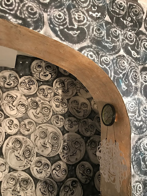 Quel plaisir de trouver cette grande pièce pleine d'œuvres de Loko, artiste tellement présent sur la scène street art de Montpellier avec ses visages ou soleils familiers! Habitué à son spray de rue, je vois avec un grand enthousiasme des œuvres tellement différentes. Certes, les visages sont encore là, mais il s'est attaqué au bois, au papier et des personnages entiers apparaissent! J'ai adoré cette salle.