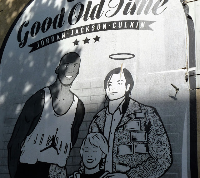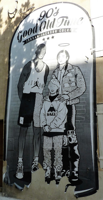Rue Imbert on pouvait voir ce curieux ensemble collé réunissant Michael Jackson, Macauly Culkin et Michael Jordan. Les photos ne sont pas top je sais.
