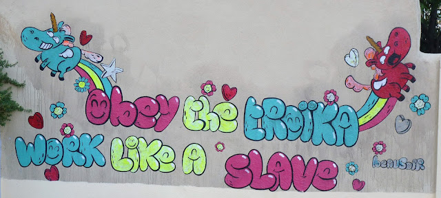 En se promenant de long en large et en travers dans ce quartier tellement accueillant, il est des artistes que l'on retrouve alors presque partout dans les petites venelles, c'est le collectif belge Les Crayons parmi lequel Créons semble être le blaze de rue le plus fréquent.