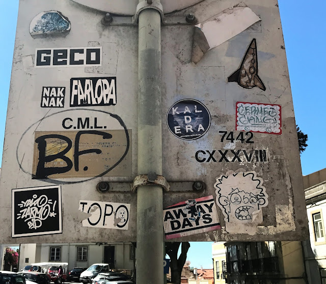 Comme partout ailleurs dans la capitale portugaise, il ne manque pas de panneau garni à l'arrière de stickers en tout genre. Comme celui ci dans la Calçada de Sao Vicente