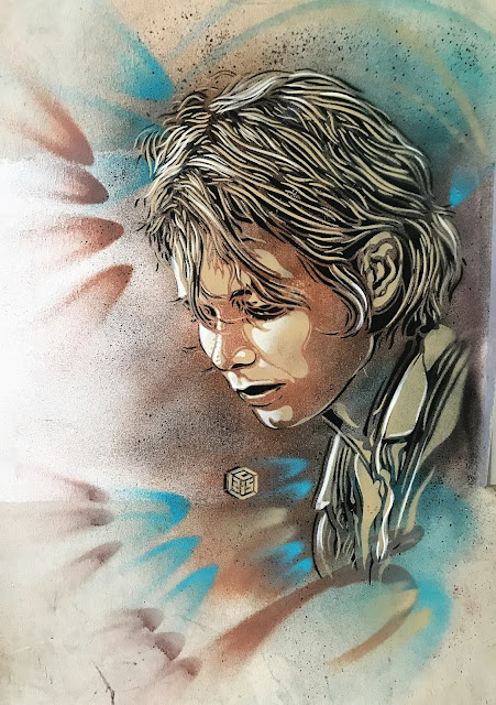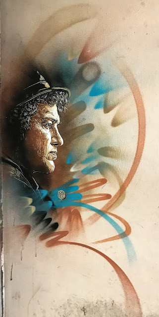 Christian Guémy (C215) a été très actif cette année. Outre les pochoirs autour du panthéon que je n'avais pas vus l'année dernière, je découvre en ce mois d'août ceux du Marais.