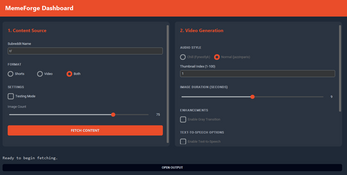 A small work-in progress meme video creator, MemeForge delivers a clean, efficient experience for generating videos quickly, while maintaining consistent output quality.