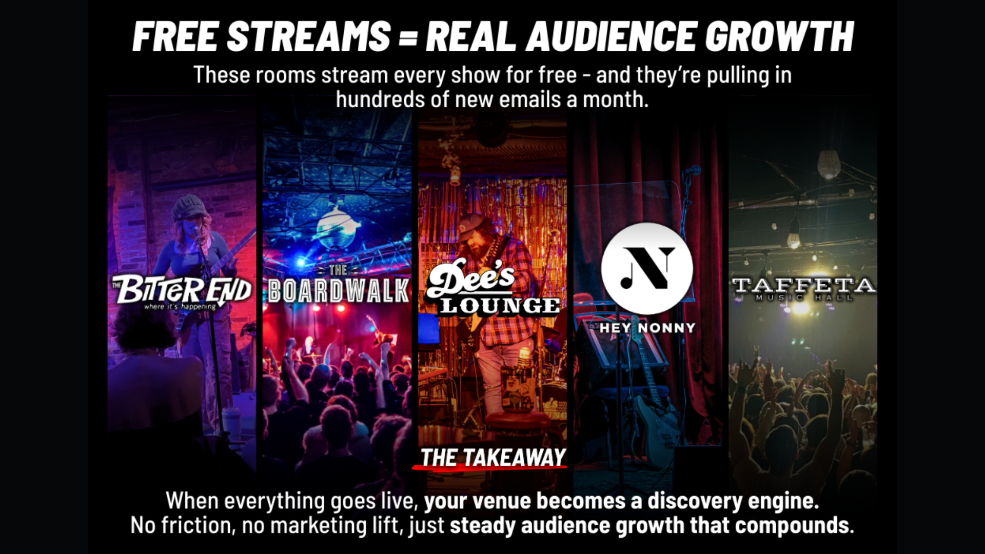 Many venue owners hesitate on livestreaming because they assume the math won’t work. The truth is simpler: livestreaming only feels expensive when it isn’t used consistently. Venues like Hey Nonny and The Boardwalk didn’t invest in massive production setups. They invested in repeatable systems — and used them often.