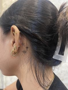 Tattoo behind ear | Delicate | Shiny | female | Our tattoo studio specializes in creating delicate tattoos behind the ear for women. Our artists are known for their gentle touch and attention to detail. If you're looking for a subtle and elegant tattoo design, visit our studio for a unique and beautiful experience.