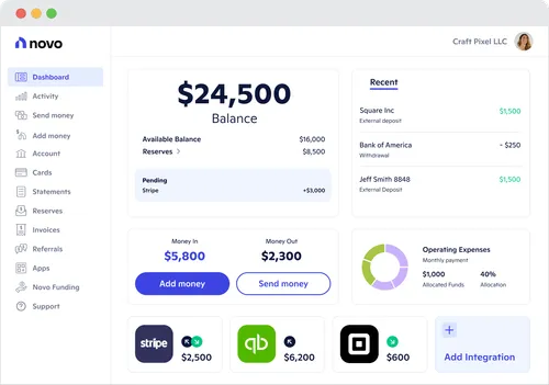 With Novo’s flexible and forward-thinking platform, you get the banking tools to help your business thrive, no matter what you're building.