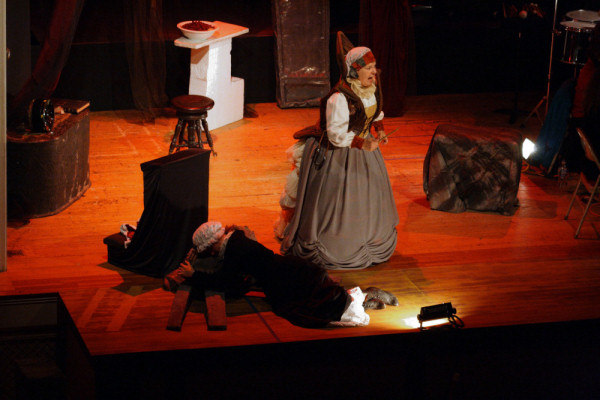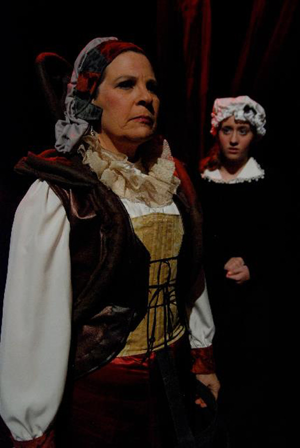 | In Rehearsal: Lisa Jablow as Erzsébet and Brie Quinlan as the maid (photo DBK) |