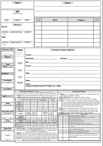 Magic Items Created through Incarnation: Cast an incarnation-spell (Incarnate, Matter, 4XP required). Then imprint a spell into an object: Cast the spell, using the Mana-Pool of the Item. Costs of the spell cannot surpass the Mana-Pool of the Item. Non-casters can use the item’s Mana. Permanent effects (e.g. auras) fully consume the pool permanently. Curses/Conditional Charges: You can choose to apply a specific action/condition to the item to charge its Mana-Pool and/or cast its spell automatically.