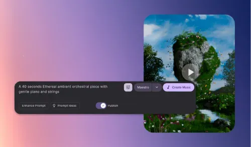 Forget stock tracks. Just describe the background music that fits your content, and watch maestro - our homegrown AI model - craft a unique, perfect soundtrack instantly.