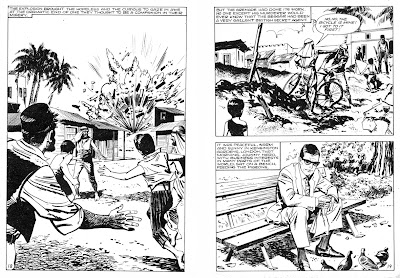 Just to keep you on your toes, the usual alternation slipped out of sequence with issues 11 and 12 (the latter featuring Johnny Nero, who usually starred in the odd numbered issues). I've also seen one Barracuda issue which accidentally printed pages from that month's Johnny Nero yarn, a problem the printers resolved by doing an insert with the correct pages. (Presumably there is also a Johnny Nero adventure with Barracuda pages.)